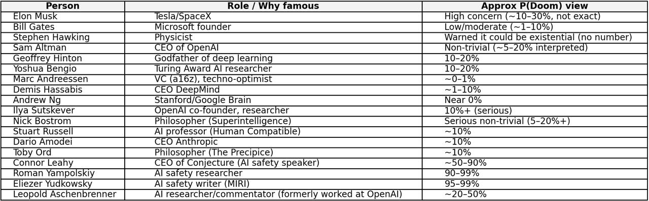Короче P(doom) это не то чтобы точная математическая величина, скорее попытка выразить в цифрах апокалиптические настроения .